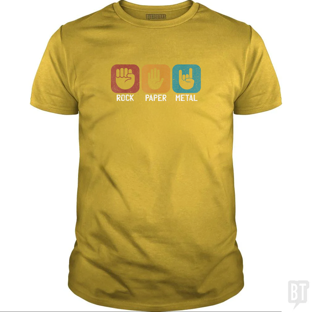 You're going to look awesome in your new BustedTees gear! With a stylish fit you can actually feel and a custom Rock Paper Metal design you’ll be proud to show off, this tee hits harder than your favorite guitar riff. It’s the perfect addition to your already great style. Treat yourself for once — you deserve this.