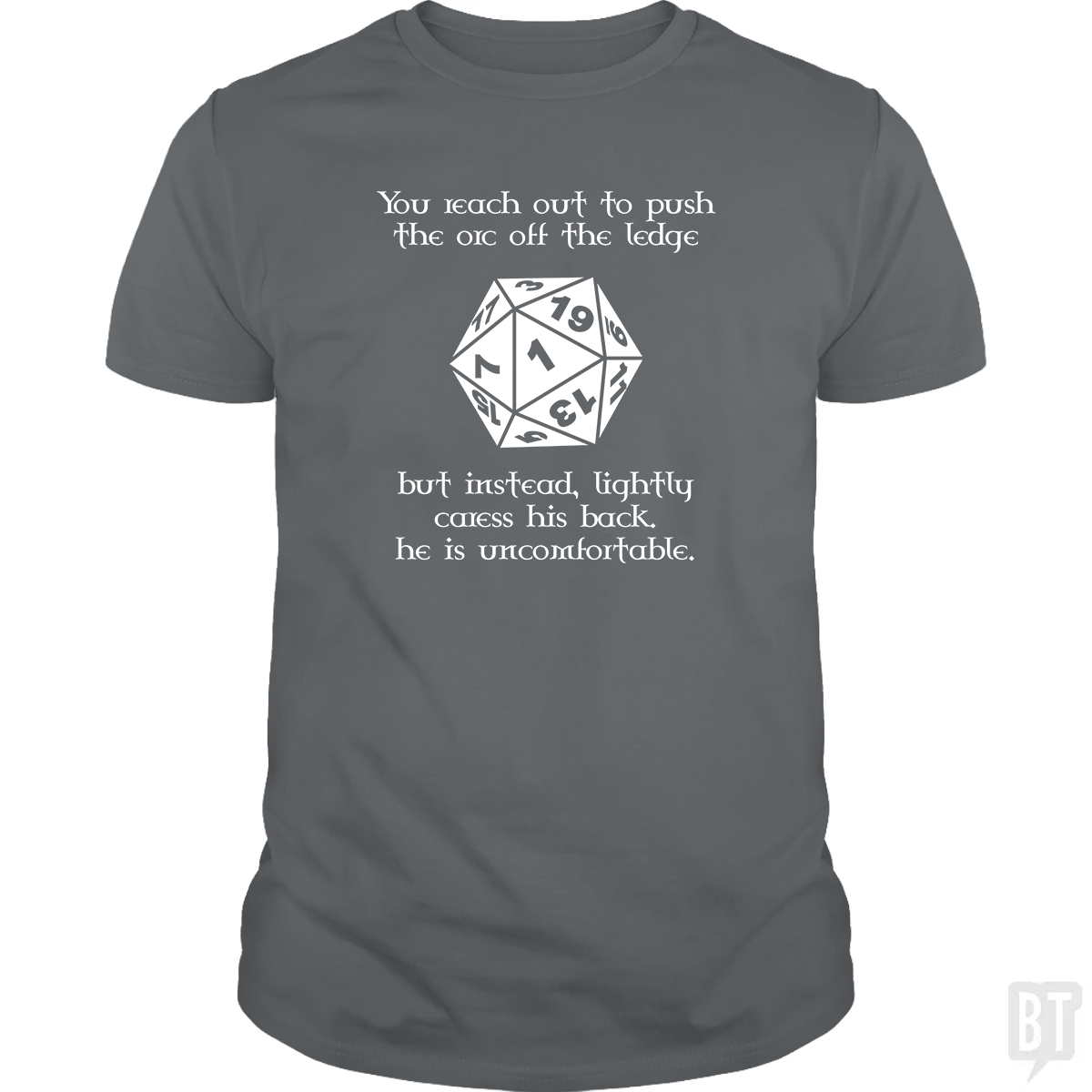 Exclusive Design: The tabletop dice graphic is a one-of-a-kind BustedTees creation—perfect for D&D players and role-playing fans alike.